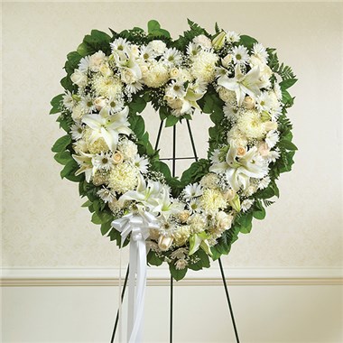 The enduring love you feel for them will keep them always remembered. This sentiment is best captured with our standing, open heart-shaped arrangement in all white. Handcrafted by our caring florists with an assortment of flawless white blooms, it is a magnificent tribute fitting for the funeral services.
